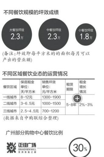按照徐麗的說法,現在購物中心的餐飲商家只有25%在盈利,另外50%的商家則面臨生存壓力,余下25%則可能有所虧損!皳宜械牟惋嬈放圃趶V州最旺的購物中心,月營業(yè)額即便做到200多萬,也沒賺到多少錢!