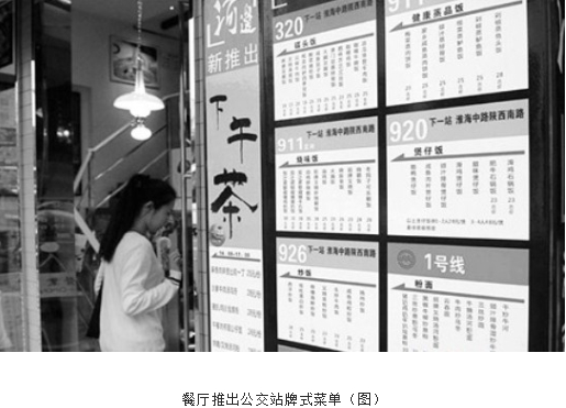 日前,一份特色“公交站牌式菜單”引來路人駐足圍觀,而據(jù)餐廳經(jīng)理透露,自從增設了這塊“站牌”,餐廳的生意也受到了積極的影響。