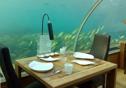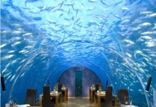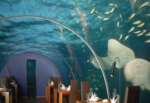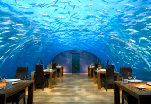 馬爾代夫港麗度假開設(shè)的第一個(gè)全玻璃海底餐廳。該餐廳為了慶祝他們的周年紀(jì)念而建,為客人也提供了體驗(yàn)機(jī)會,不僅吃海下的,還在海下吃,睡在海下。真的是不可思議。意境也不用說了,是多么壯麗。