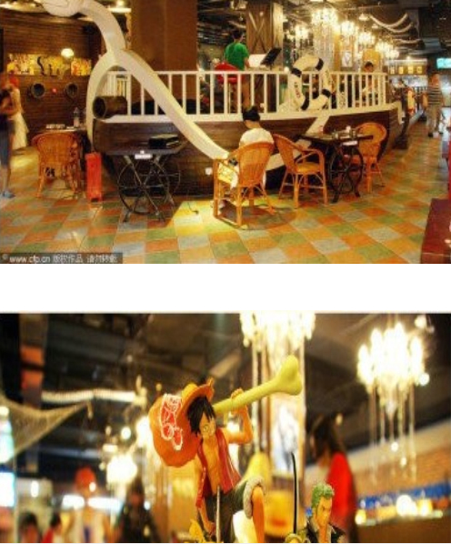 這家位于廈門的海賊王主題餐廳,有著近20米長(zhǎng)的“黃金梅列號(hào)”成為最大特色。顧客可以坐在“船”內(nèi)品嘗店內(nèi)主打的烤肉。每天店內(nèi)都會(huì)安排cosplay表演,顧客可以與coser們合影留念,同時(shí)6也可以登上船頭與歌手們飆歌一曲。