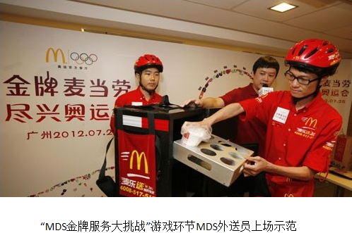 在廣州,麥當勞特別推出了3家奧運主題餐廳,分別是今日廣場餐廳、天津大廈餐廳和富景花園餐廳。除了主題餐廳,麥當勞在奧運期間還在24小時餐廳提供了賽事直播,消費者可以在第一時間觀看精彩賽事。