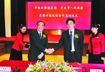 全聚德集團(tuán)總經(jīng)理邢穎左二與章丘市委副書記、市長劉天東簽署戰(zhàn)略合作協(xié)議