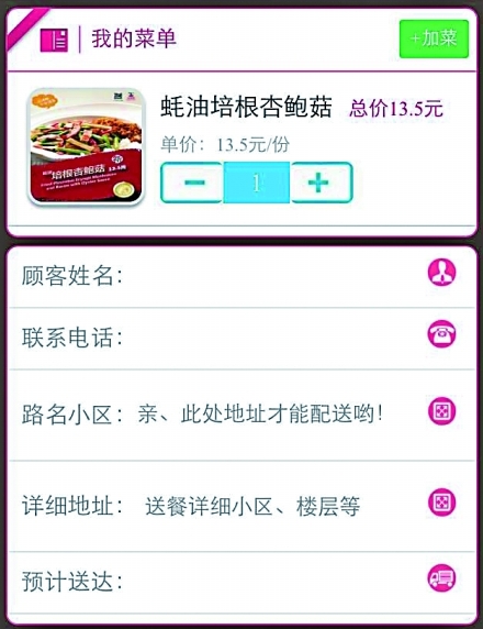 昨日,記者嘗試著用手機加上重慶多家餐飲店的官方微信賬號,進入點餐頁面,上面列著各種菜品和酒水的名稱、價格及實物圖片,點擊想要的菜品,按照要求填寫姓名、電話和地址等信息,再點擊提交,一份訂單就發(fā)送出去了。