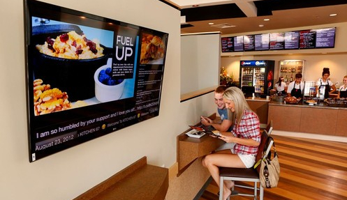 通過數(shù)字標(biāo)牌系統(tǒng)的構(gòu)建,餐廳就可以把主打菜品通過大屏幕靈活生動的展現(xiàn)出來,試問在“跟著感覺走”的點餐過程中,顧客怎么會對大屏幕顯示中播放的熱騰騰、香噴噴的美味佳肴視而不見呢?而且,店內(nèi)的數(shù)字標(biāo)牌網(wǎng)絡(luò)還可與時下熱門的社交媒體,如微博、微信等,打造出美食討論圈,對顧客發(fā)布的相關(guān)美食信息、餐廳評論實時追蹤、展示,讓餐廳與“微博控”、“微信控”們保持互動,從而對顧客消費習(xí)慣進(jìn)行輿論引導(dǎo),提高菜品的推廣效率。