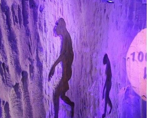 于是老板突發(fā)靈感想出了這個店名,嘿嘿,介個是看湖南衛(wèi)視采訪他家老板親口說滴,立馬就過來探了店面外觀看著猶如洞穴,入口昏暗,趕腳挺神秘滴,墻壁上有許多原始人影像,彷佛搭乘機器貓的時光穿梭機來到了原始社會,沿樓梯小心前行,猿人也漸漸站立起來,述說著人類進化過程……外圍環(huán)境很有氣勢!