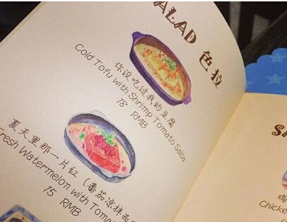 餐廳最大的亮點之一在于菜單,提供各種創(chuàng)意菜式,“紙牌屋肋骨、來自星星的炸雞、你沒吃過我的豆腐…”菜名都非常的寫意,菜名都非常有意思,同時又緊跟時下潮流元素,讓人有沖動每道菜都點上一遍。