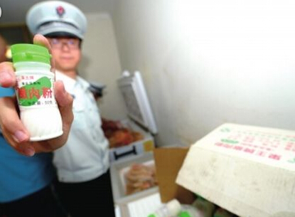 在牛某的房間內(nèi),執(zhí)法人員找到數(shù)瓶嫩肉粉,這種嫩肉粉標(biāo)簽上說(shuō)明為:每500克(1斤)加5克。但牛某承認(rèn),他都是隨意添加,沒(méi)有固定用量。