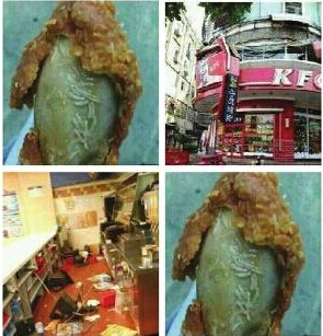 [摘要] 9月25日早,記者在朋友QQ空間內(nèi)看到一則消息,附有4張圖片,上面的文字內(nèi)容稱(chēng)蘭州肯德基吃出了肉中肉,里面生了很多寄生蟲(chóng),七里河店被市民給砸了。