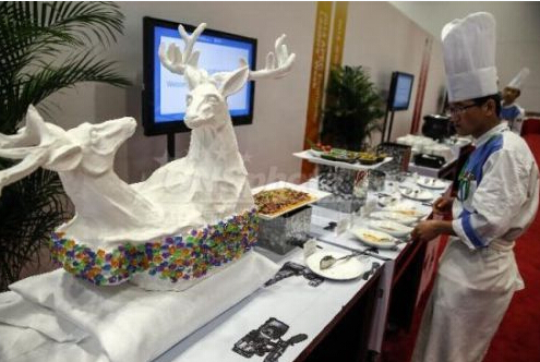 昨天2014APEC新聞中心正式啟用 餐飲區(qū)造型獨特
