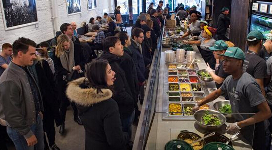 Sweetgreen只是美國(guó)快捷休閑式連鎖餐廳的一個(gè)典型代表,總部位于紐約的Dig Inn和加州的Tender Greens也都屬于這類餐廳。它們提倡慢食,向健康意識(shí)普遍增強(qiáng)的客戶提供選用本地食材做出的菜品。它們從本地農(nóng)戶那里采購(gòu)大部分食材,每個(gè)餐館都要在當(dāng)天準(zhǔn)備出所需的材料。雖然客戶也可以點(diǎn)菜單以外的東西,但大多數(shù)人還是從餐館自行設(shè)計(jì)的沙拉菜單中點(diǎn)餐。