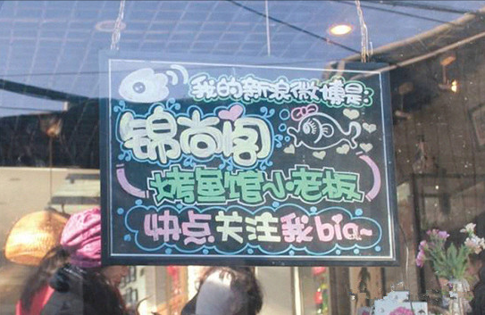 烤魚店開在胡同里,曲徑通幽,但人流量畢竟有限,作為廣告系畢業(yè)生的唐棠如何來推廣宣傳自己呢?唐棠介紹,她開店那會兒,趕上微博熱,于是她立即注冊了一個微博號,用戶名是“錦尚閣烤魚館小老板”,并附上自己的訂餐電話。在微博里,她每天勤勤懇懇地更新,內(nèi)容不全是店里的廣告,而是很多開店的趣事以及自己的生活片段,比如有一條微博是這樣寫的:“員工因家鄉(xiāng)不同,一會兒有離職要去收麥子的,一會兒有離職要去敲松子的,一會兒又有要回家收玉米的……導(dǎo)致我現(xiàn)在對農(nóng)廣天地的收獲時段了如指掌”;“來了一個帥得飛起來的男孩兒,女服務(wù)員們都瘋起來、爭著要服務(wù)這一桌,我批評了她們:服務(wù)行業(yè)怎么能失態(tài)不淡定!怎么能區(qū)別對待!你們知不知道,店是我的,你們是我的,好看的男客人也是我的!這桌我來服務(wù),你們都忙別的去吧……”這些詼諧有趣的情節(jié)以及老板的美照俘獲了眾多同齡人的心,目前她的微博共吸引了5000多名粉絲。唐棠說:“只要勤更新,微博的宣傳效果的確非常顯著而且很持久,開店沒多久,粉絲們就源源不斷地上門來品嘗烤魚,有很多人成了小店的回頭客。到現(xiàn)在,我的新浪微博名字一直寫在小黑板上,掛在店外,來回經(jīng)過的路人有時候也忍不住好奇心關(guān)注我的微博,變成潛在客戶!