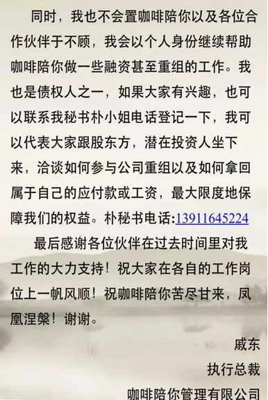 網(wǎng)爆咖啡陪你執(zhí)行總裁辭職信