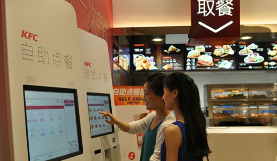 半個月前,肯德基繼在全國2200多家餐廳提供WIFI服務(wù),推出自助點餐硬件外,再度與支付寶達(dá)成全面合作,在上海和浙江的700多家餐廳接入支付寶支付,并計劃在全國的餐廳逐步推廣這一服務(wù)。顧客在肯德基付款時,只要出示支付寶錢包付款碼,讓收銀員掃一下后,2秒即可完成付款。相比現(xiàn)金方式,顧客使用支付寶錢包支付時無需準(zhǔn)備現(xiàn)金,支付快捷,收銀員也無需找零,既方便了顧客也提高了收銀員的工作效率。