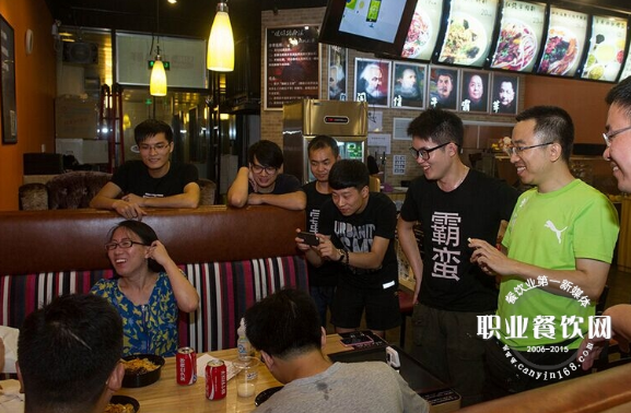 一個90后團(tuán)隊來做餐飲會有什么不太一樣的地方?張?zhí)煲皇冀K在思考。他把工作做成了游戲。在他的企業(yè)里,員工每天來到單位,第一件事是來領(lǐng)任務(wù)!敖裉煊卸嗌賯任務(wù),我的員工就像玩家一樣來認(rèn)領(lǐng),任務(wù)完成以后可以掙‘牛幣’,掙完‘牛幣’可以升級”……