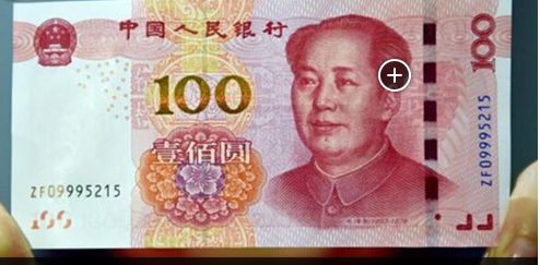 新百元大鈔與舊版百元人民幣相比,最明顯的變化是人民幣票面中部增加了光變阿拉伯?dāng)?shù)字100。當(dāng)垂直觀察人民幣票面時,數(shù)字以金色為主。