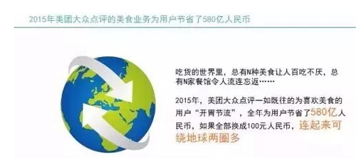 2月2日,美團(tuán)大眾點(diǎn)評(píng)發(fā)布《2015年國(guó)人餐飲消費(fèi)報(bào)告》,稱(chēng)2015年,美團(tuán)、大眾點(diǎn)評(píng)幫助消費(fèi)者在餐飲消費(fèi)方面節(jié)省了580億元。