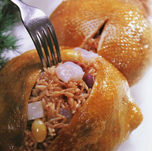 看樣子會(huì)以為這是一只炸雞,金黃的酥皮布滿均勻而細(xì)密的氣泡,然而咬破這層輕薄酥香半透明,絲毫不膩的雞皮之后,濃郁滾燙的雞汁就跟隨松軟入味的雞肉一起噴涌而出,完全酥爛并且包含各種香料氣味的雞肉,一碰就從骨頭上脫離,卻還有雞的滑嫩和鮮美原味。絕不像鹽?雞、白切雞或者北方扒雞,那口感更像是吃了一個(gè)燉雞天婦羅.這只費(fèi)盡心機(jī)的雞叫葫蘆雞,始于唐代,有一個(gè)十分驚悚的故事。