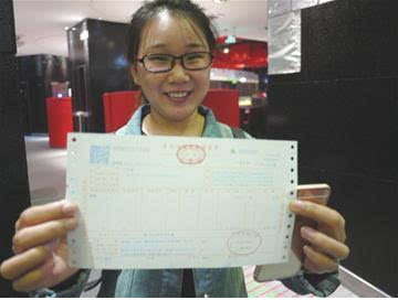 來青旅游的威海女士丁風(fēng)菊在海底撈取得首張營改增擴圍后的餐飲業(yè)發(fā)票。