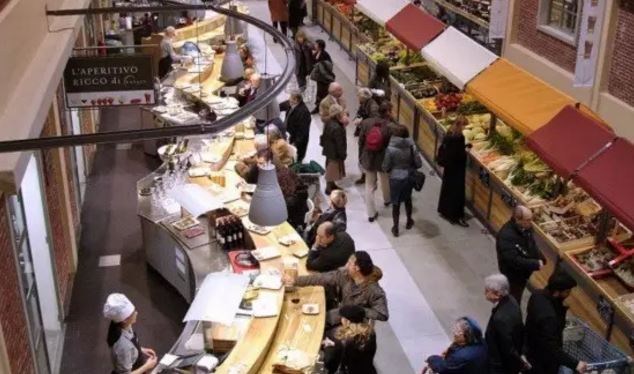 這是個顛覆的模式:既是餐廳,選購好食材后讓大廚現(xiàn)場烹制;也是超市,可以選購食物帶回家;還是興趣班,你可以學(xué)習(xí)各種意式美食知識……
