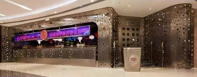遠處看像盤踞在商場里的金屬洞穴,外圍用不銹鋼緊緊包裹,墻壁上安置了碩大的金銀兩色蜘蛛。在進門處,運用高科技手段,用水幕再現了一個逼真的水簾洞。餐桌上每個蜘蛛都帶上了緊箍咒,這些蜘蛛也成為嘻游記餐廳的標志元素。設計時沒有刻意去塑造西游記的形象,而是用很多插畫來表達現代想象。翻開菜單就像是翻開一本故事書,菜名都非常有西游記特色,例如“俺老孫最!薄ⅰ芭畠簢拇簤簟、“松茸洋芋紫金缽”等。