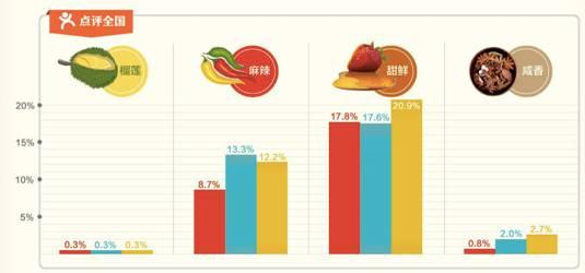 《中國餐飲報(bào)告(白皮書2017)》的最新數(shù)據(jù)顯示:2016年,甜鮮口感的受歡迎程度已經(jīng)小勝麻辣這一記憶度最高的口感。