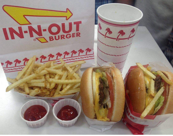 因?yàn)閮扇司τ邢,所以菜單?jiǎn)單的不會(huì)犯選擇困難癥。菜單上只有三種漢堡:普通漢堡、芝士漢堡、雙層漢堡,加上薯?xiàng)l、奶昔和幾種飲料,菜單70年來(lái)幾乎沒(méi)變化。分店之所以大部分在加州,因?yàn)殡x兩個(gè)總后勤近,美國(guó)其他地方都嫌遠(yuǎn),表說(shuō)走出美國(guó)走向世界了。