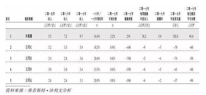 以下為中國五大火鍋餐飲集團的數(shù)據(jù)(以總收入計):